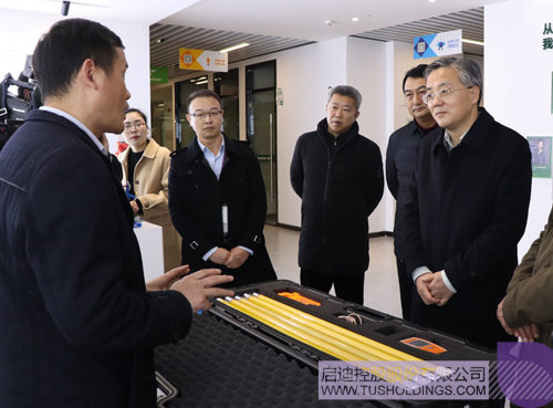 官方网站之星一带一路孵化基地入孵企业广西电友安博电子(中国)有限公司负责人向周红波市长(右一)一行介绍企业产品